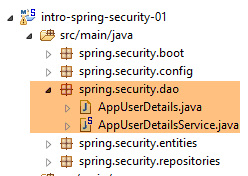 - ligne 12 : nous avons ajouté la méthode [authenticate(User user)] pour authentifier un utilisateur. Elle lance une exception si l'utilsateur n'a pas le droit d'accéder à l'URL [/authenticate] du service web ;