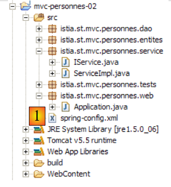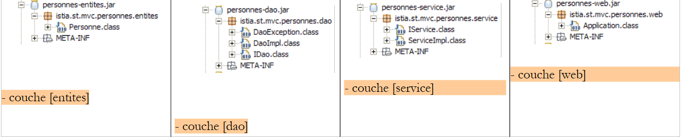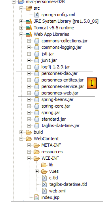 Afin de faciliter le passage d’une version à l’autre, nous créons un nouveau projet Eclipse [mvc-personnes-02B], copie du projet précédent [mvc-personnes-02] mais où les couches [web, service, dao, entites] ont été mises dans des archives .jar :