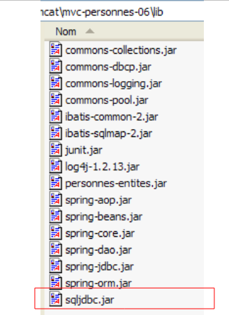 On notera la présence du pilote jdbc [sqljdbc.jar] du SGBD [Sql Server Express]. Toutes ces archives font partie du Classpath du projet Eclipse.