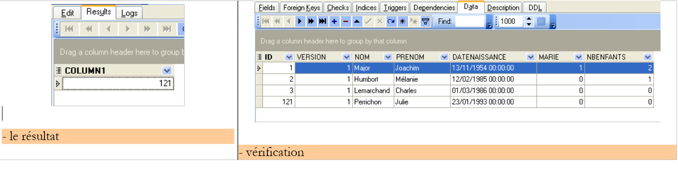 PERSONNES(VERSION, NOM, PRENOM, DATENAISSANCE, MARIE, NBENFANTS)