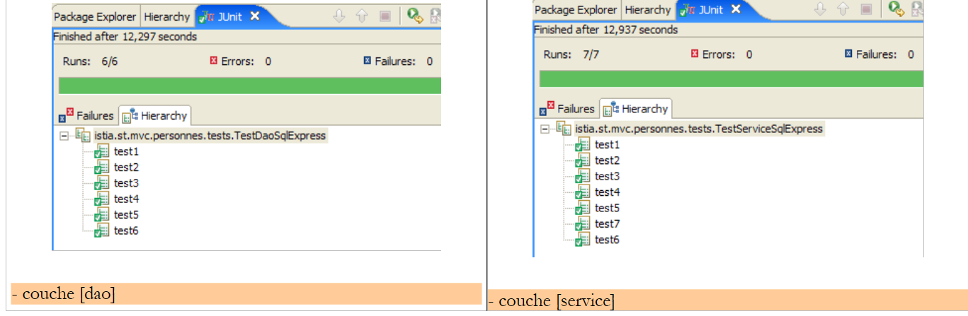 Les tests des couches [dao] et [service] sont les mêmes que pour la version [Firebird]. Les résultats obtenus sont les suivants :