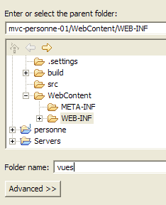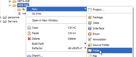 Nous allons créer un sous-dossier [vues] dans le dossier [WEB-INF] : [clic droit sur WEB-INF -> New -> Folder] :