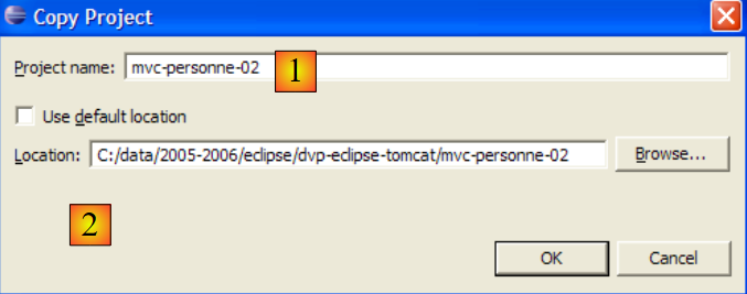 Pour créer le projet Eclipse [mvc-personne-02] de l'application web [/personne2], nous allons dupliquer le projet Eclipse [mvc-personne-01] afin de récupérer l'existant. Pour cela procédons de la manière suivante :