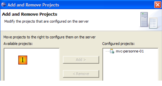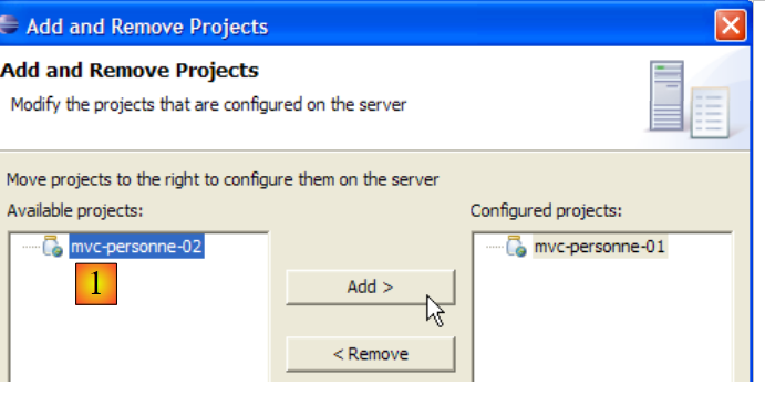 Cette fois-ci, le projet [mvc-personne-02] est bien vu. Nous l'ajoutons aux projets configurés pour être exécutés par Tomcat :