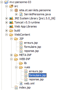 Pour créer le projet Eclipse [mvc-personne-03] de l'application web [/personne3], on dupliquera le projet [mvc-personne-02] en suivant la procédure décrite au paragraphe 6.2, page 78.