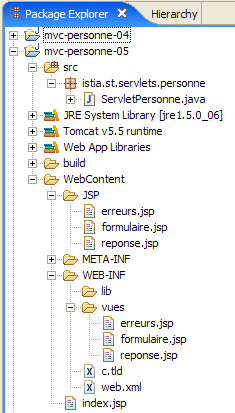 Pour créer le projet Eclipse [mvc-personne-05] de l'application web [/personne5], on dupliquera le projet [mvc-personne-04] en suivant la procédure décrite au paragraphe 6.2.