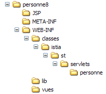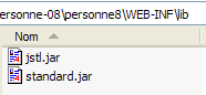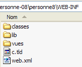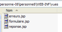 Nous pouvons constater que tous les éléments du projet [mvc-personne-07] sont là, les codes source ayant été remplacés par leurs équivalents compilés placés dans [WEB-INF/classes] comme l'exige la norme de déploiement des servlets.