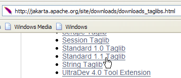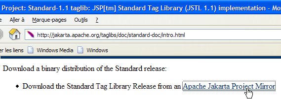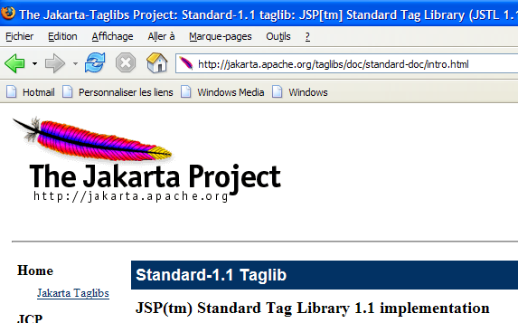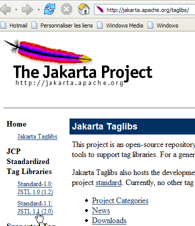 Nous utiliserons l'implémentation JSTL 1.1 du projet [Jakarta Taglibs] disponible à l'Url [http://jakarta.apache.org/taglibs/] (mai 2006) :