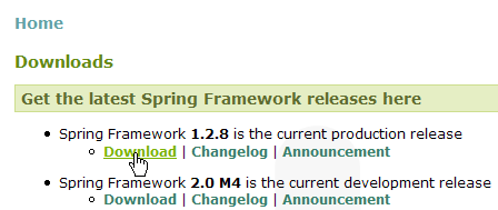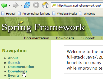 - [1] : Spring utilise diverses technologies tierces appelées ici dépendances. Il faut télécharger la version avce dépendances afin d'éviter d'être obligés ensuite de télécharger les bibliothèques des outils tiers.