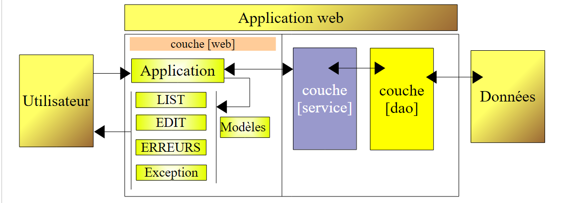 Couche interface utilisateur [ui]Couche d'accès aux données [dao]Couche métier [metier]Donnéesutilisateur