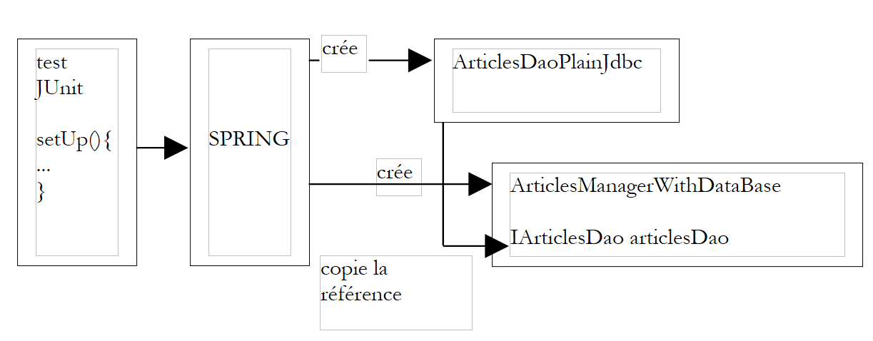 - lorsque Spring construira le singleton [ArticlesManagerWithDataBase], il sera amené à créer également le singleton [ArticlesDaoPlainJdbc] :
