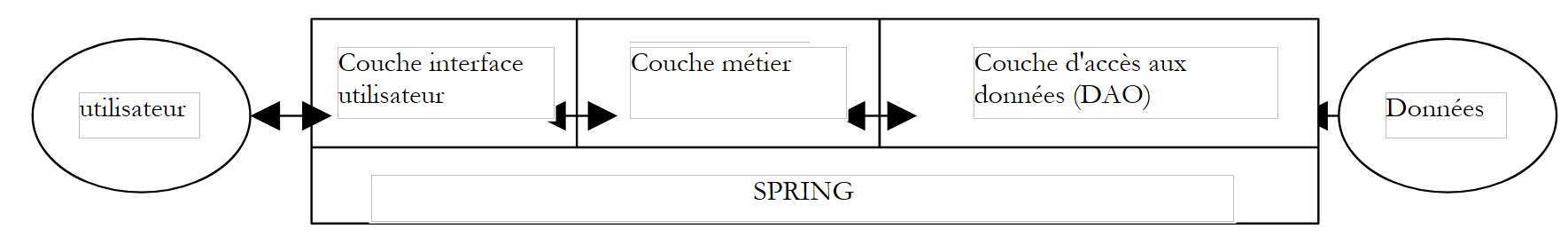 - l'intégration des trois couches sera réalisée par Spring