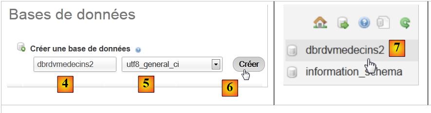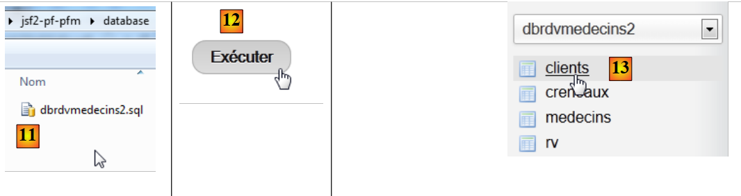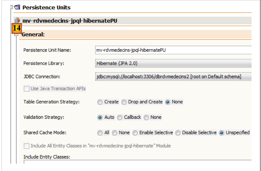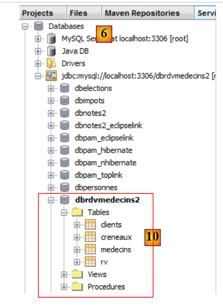 - en [7] : la base de données qui sera générée à partir des annotations de l'entité [Personne] ainsi que de configurations complémentaires faites dans un fichier appelé [persistence.xml]