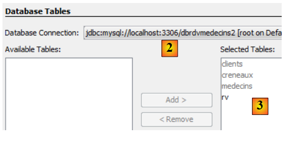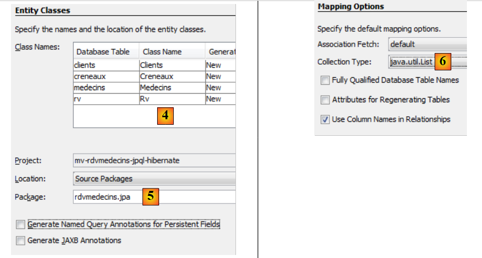 - la ligne 13 qualifie le champ jour de type Java Date. On indique que dans la table [rv], la colonne [JOUR] (ligne 12) est de type date (sans heure),