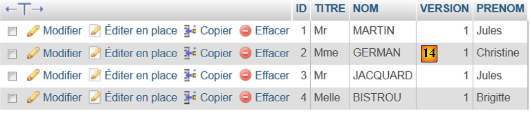 version de la ligne dans la table. A chaque fois que la personne est modifiée, son n° de version est incrémenté. | |