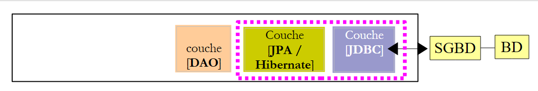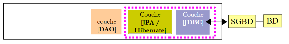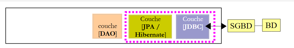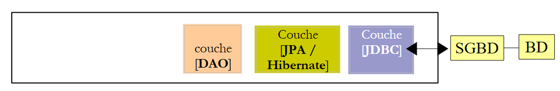 Le lecteur est invité à relire le début de ce document (paragraphe 2) qui explique le rôle de la couche JPA dans une architecture en couches. La couche JPA s'insère dans les couches d'acès aux données :