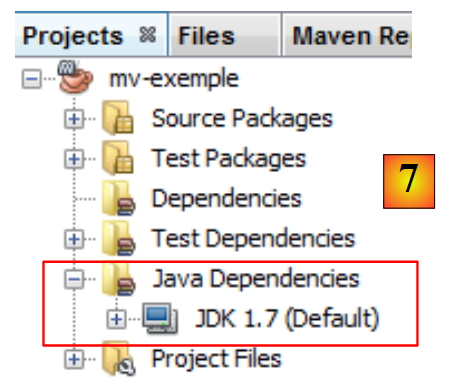 - en [7], le fichier [pom.xml] de configuration du projet Maven. POM signifie Project Object Model. On sera amené à intervenir directement sur ce fichier.