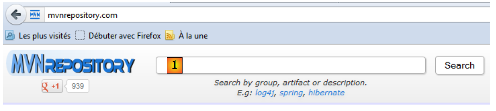 Supposons maintenant qu'on ne connaisse pas le [groupId] de l'artifact que l'on désire. Par exemple, on veut utiliser Hibernate comme ORM (Object Relational Mapper) et c'est tout ce qu'on sait. On peut aller alors sur le site [http://mvnrepository.com/] :