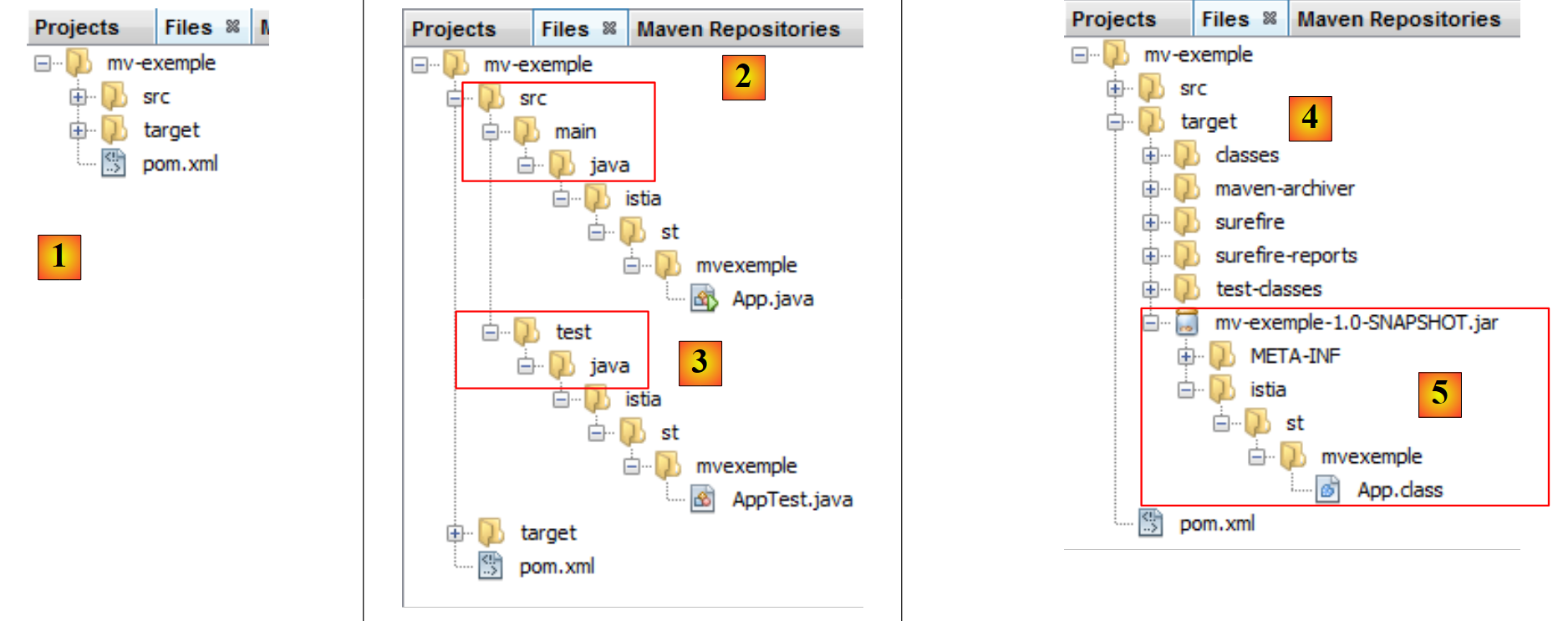 - [4] : le dossier [target] est créé par la construction (build) du projet,