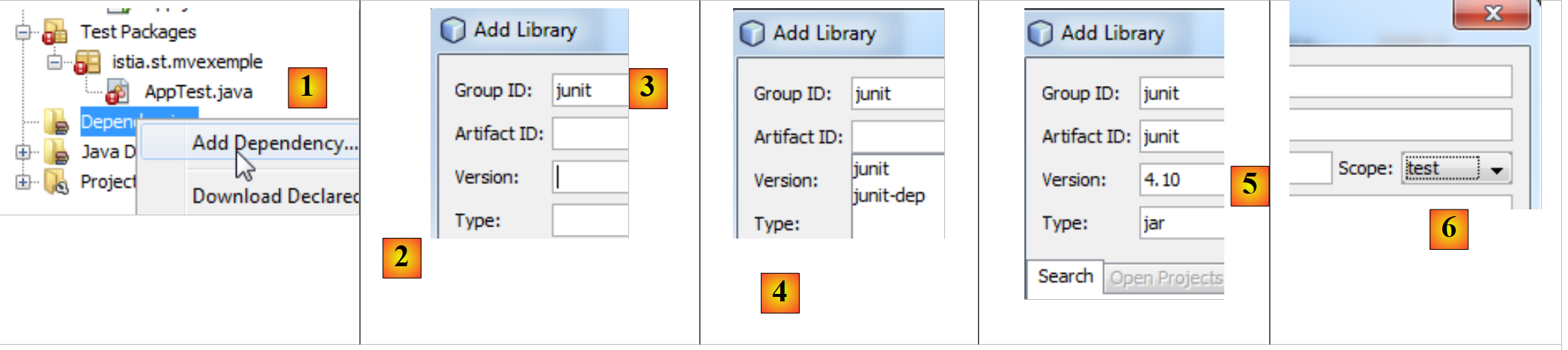 - en [6], nous choisissons la portée test pour indiquer que la dépendance n'est nécessaire qu'aux tests.