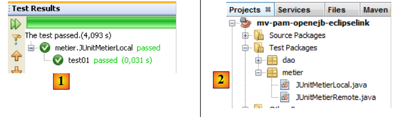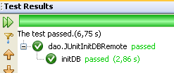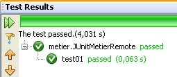Ceci fait, le projet peut être construit et le test [JUnitMetierRemote] exécuté :