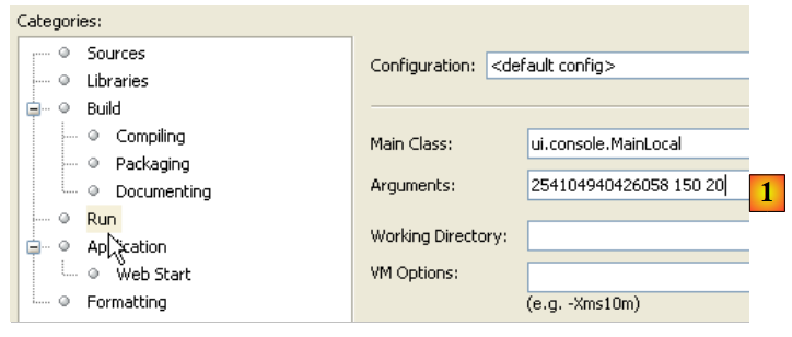 Nous configurons le projet pour qu'il soit exécuté avec des arguments [1] :