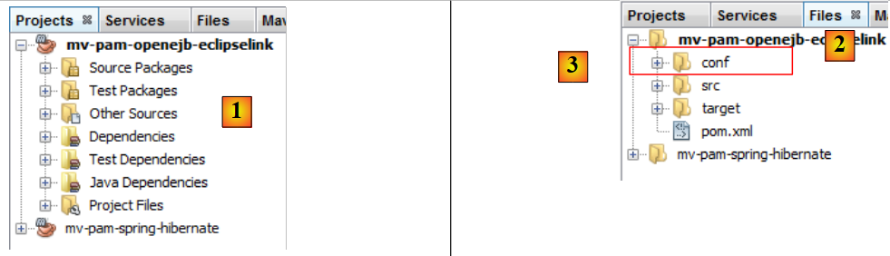 - dans l'onglet [Files] [2], créer un dossier [conf] [3] sous la racine du projet