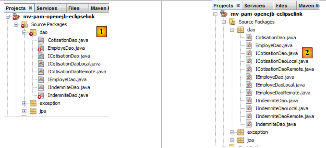 6.2.3.2. Les EJB [EmployeDao] et [IndemniteDao]