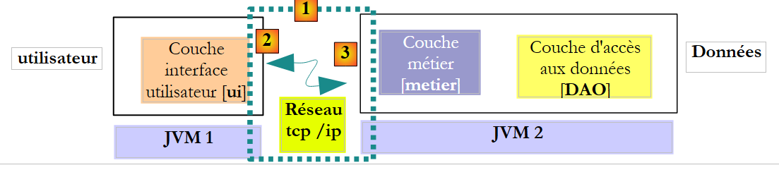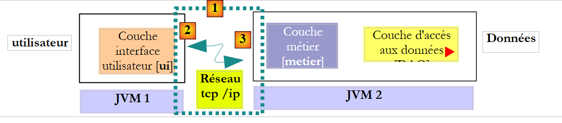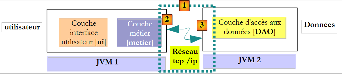Lorsque l'interface distante de la couche [DAO] est utilisée, le client de cette interface s'exécute habituellement dans une autre JVM.