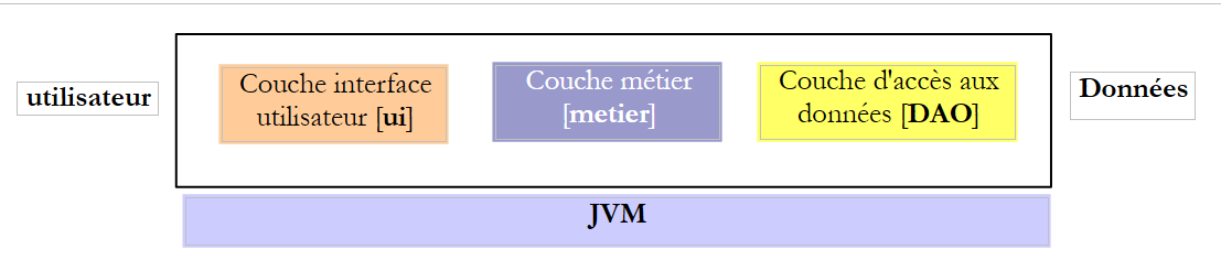 Ci-dessus, les couches [metier] et [DAO] échangent des objets par référence. Lorsqu'une couche change l'objet partagé, l'autre couche voit ce changement.