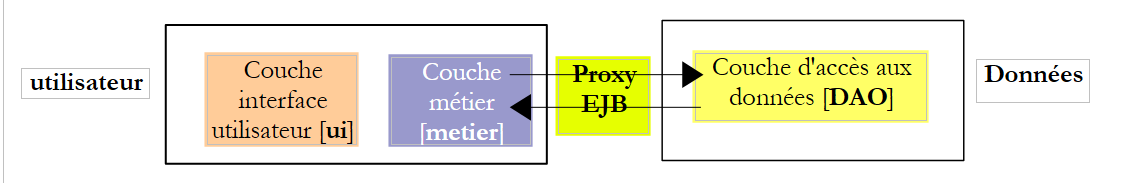 Dans le schéma ci-dessus, pour communiquer avec la couche [metier], la couche [ui] doit obtenir une référence sur l'interface distante de l'EJB de la couche [metier].