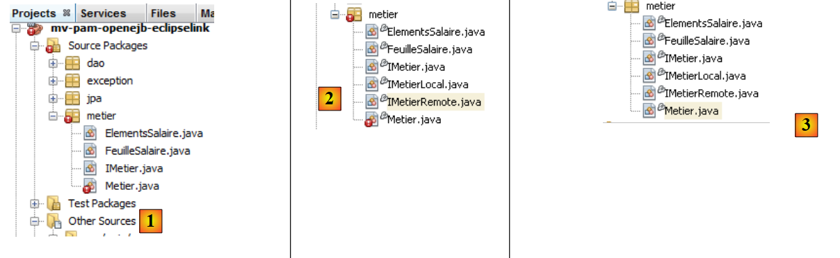 Ceci fait, en [3] nous modifions la classe [Metier] afin qu'elle devienne un EJB :