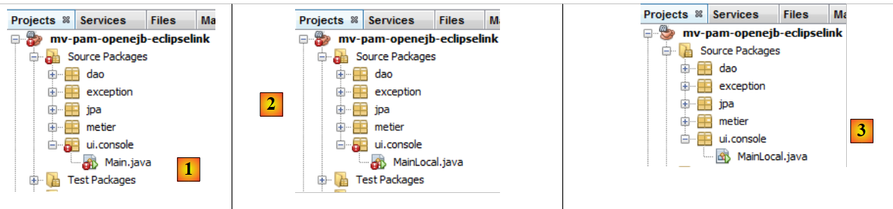 Nous allons faire le portage de la couche [console] par copie de packages du projet [mv-pam-spring-hibernate] vers le projet [mv-pam-openejb-eclipselink].
