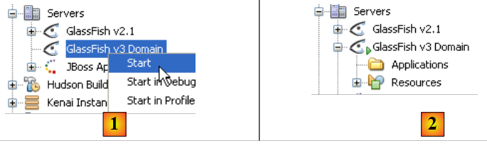 - en [2], l'arborescence du serveur Glassfish est rafraîchie