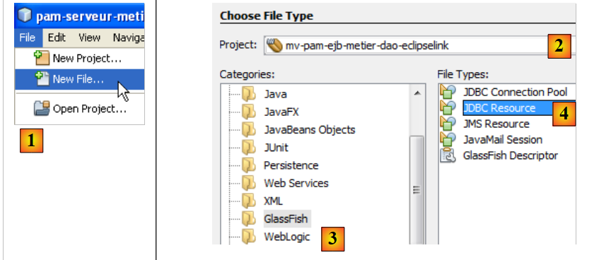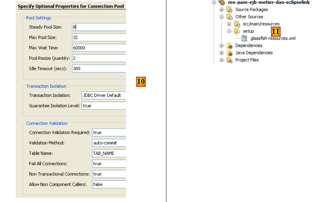 - en [4], la ressource JDBC [jdbc / dbpam_eclipselink] a été créée sur le serveur Glassfish. On rappelle que nous l'avions définie paragraphe 7.1.1.2.