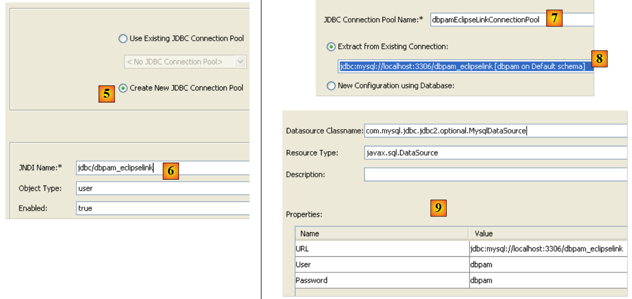 - dans la liste déroulante [7], choisir la source de données JDBC [jdbc/dbpam_eclipselink] qui vient d'être créée.