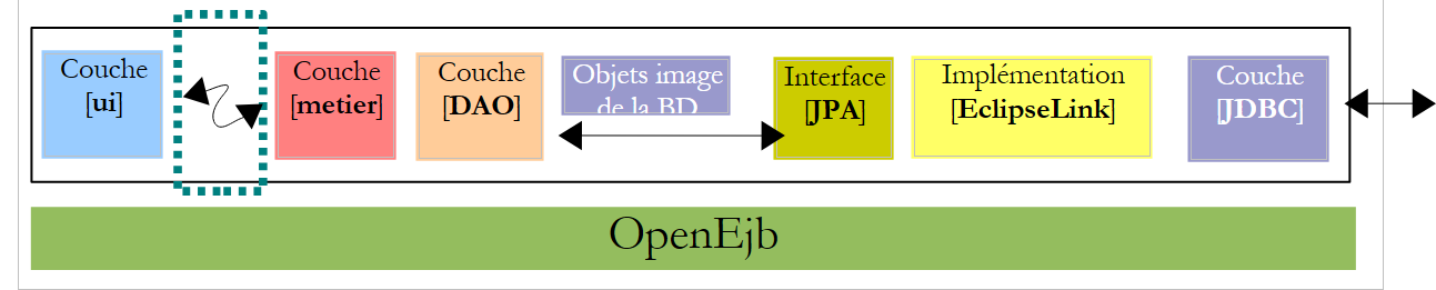 On se propose de placer les EJB des couches [metier] et [DAO] de l'architecture OpenEJB / EclipseLink dans le conteneur d'un serveur d'applications Glassfish.