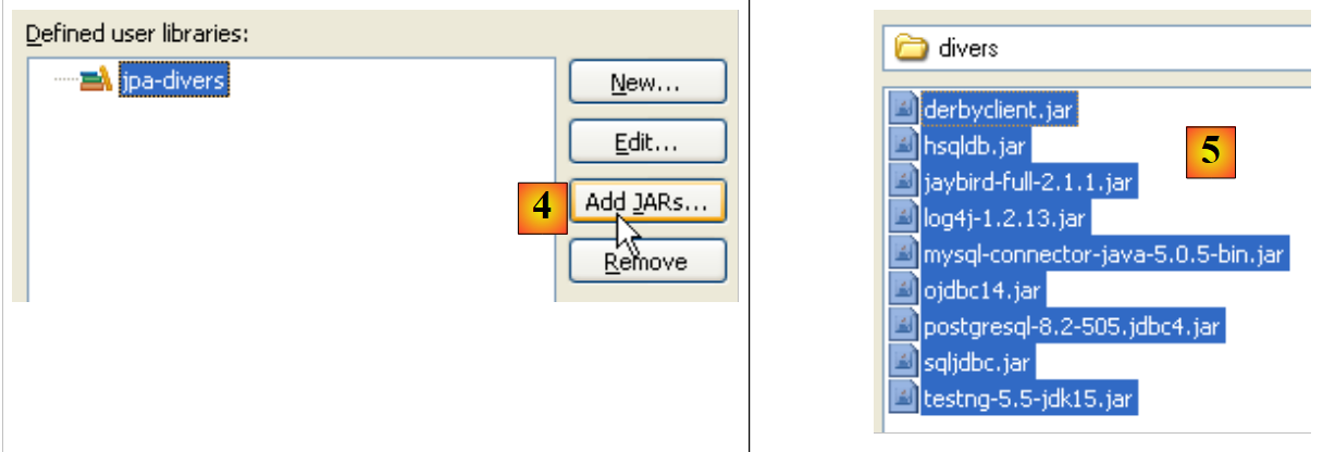 - en [4] : on va sélectionner les jars qui feront partie de la bibliothèque [jpa-divers]