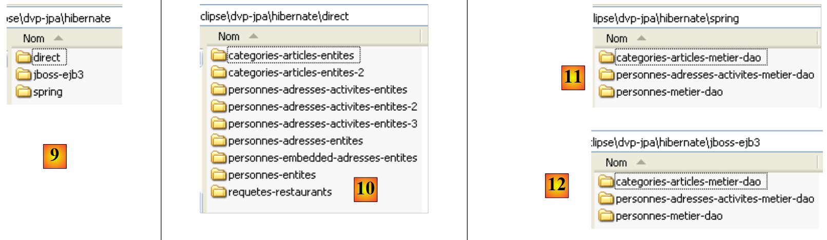 - en [10] : le dossier <hibernate/direct> regroupe les exemples où la couche JPA est exploitée directement avec un programme de type [Main].