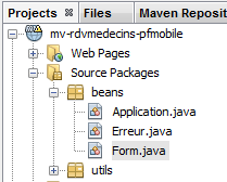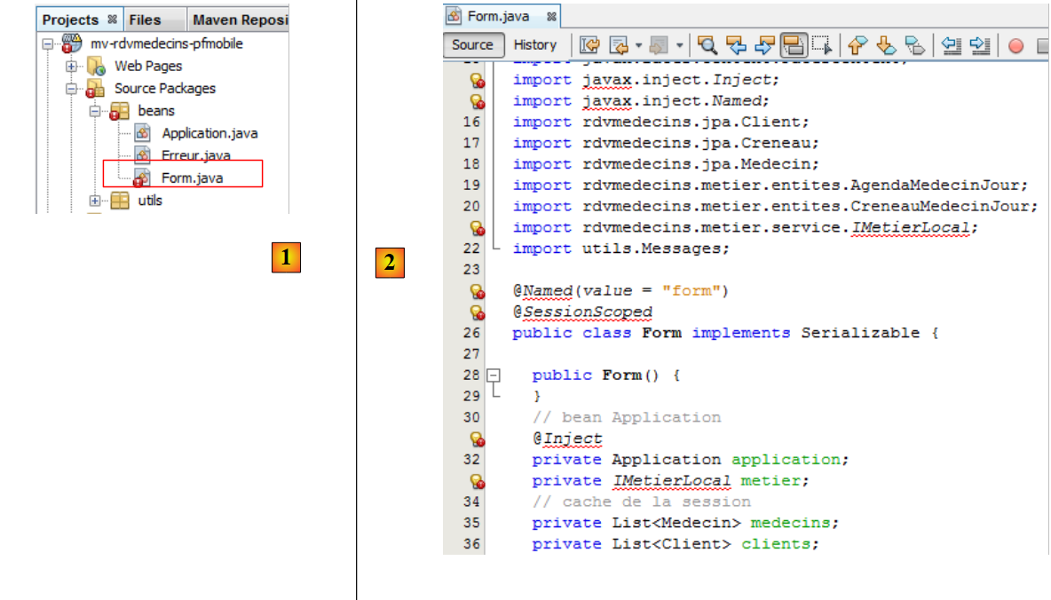 Ceci fait, le bean [Application] n'a plus d'erreurs. Regardons maintenant le bean [Form] [1], [2] :