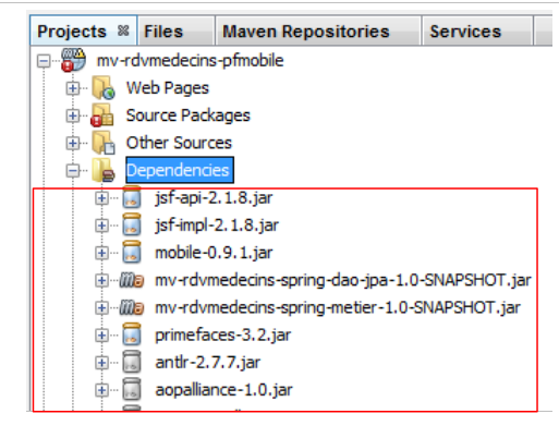 - le serveur Glassfish fournissait les bibliothèques de JSF. Ce n'est plus le cas avec le serveur Tomcat. Il faut donc les ajouter aux dépendances.
