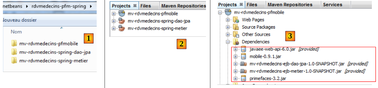 Nous mettons tous les projets nécessaires au portage dans un nouveau dossier [rdvmedecins-pfm-spring] [1] :