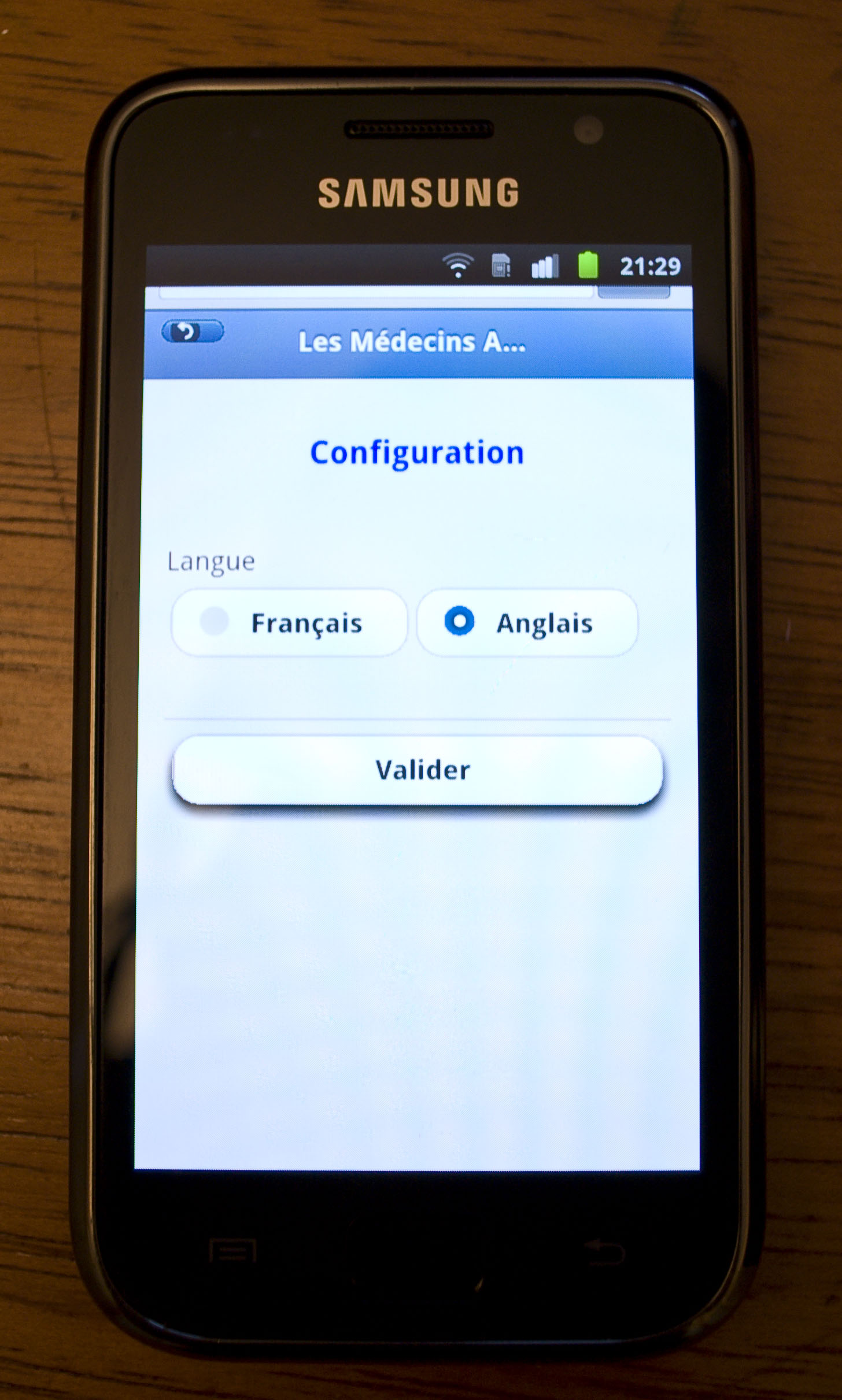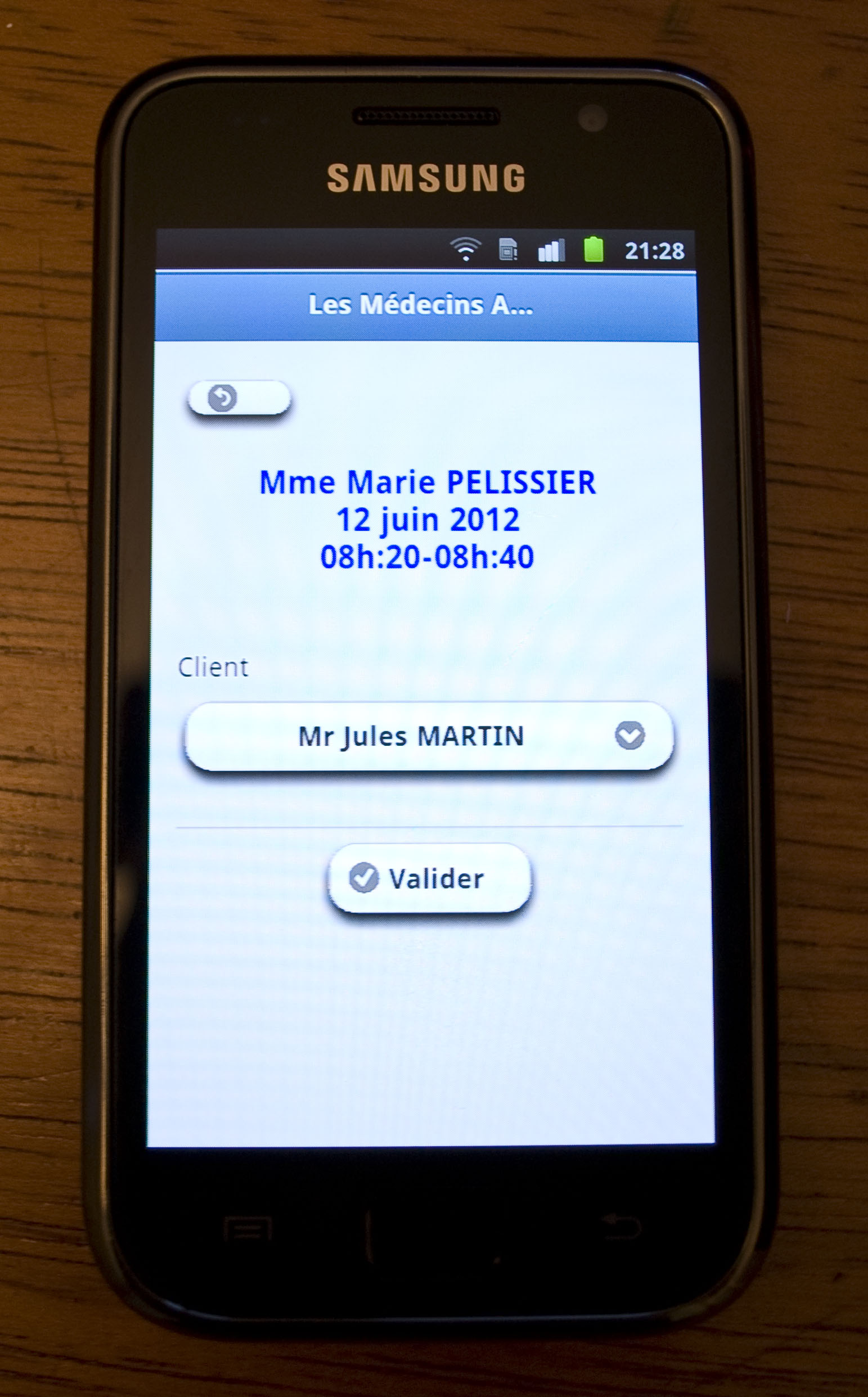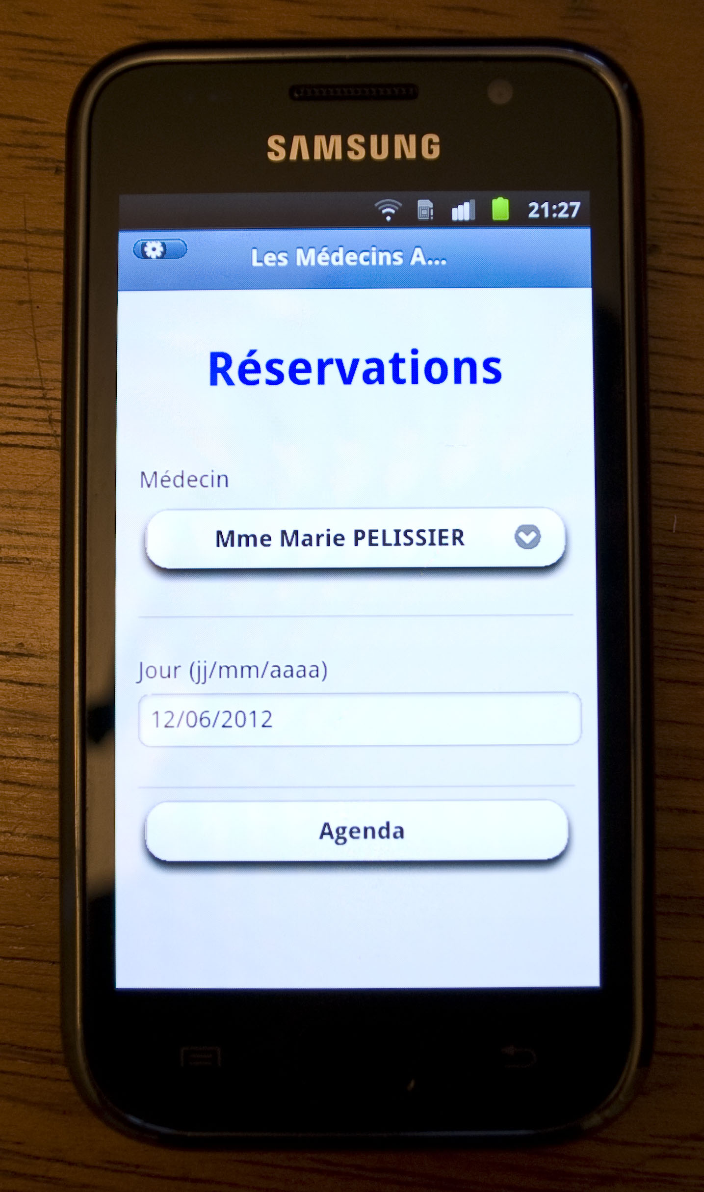 Pour tester l'application sur un mobile, on procèdera comme il a été indiqué au paragraphe 8.5.6. Voici des photos de l'application :