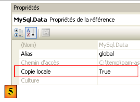 Ces références ont été prises dans le dosssier [lib] [4]. On prendra soin que toutes ces références aient leur propriété "Copie locale" à "True" [5] :