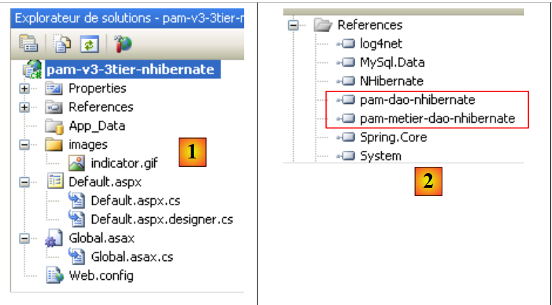 - ligne 12 : une référence sur la couche [metier] encapsulée dans la DLL [pam-metier-dao-nhibernate.dll]