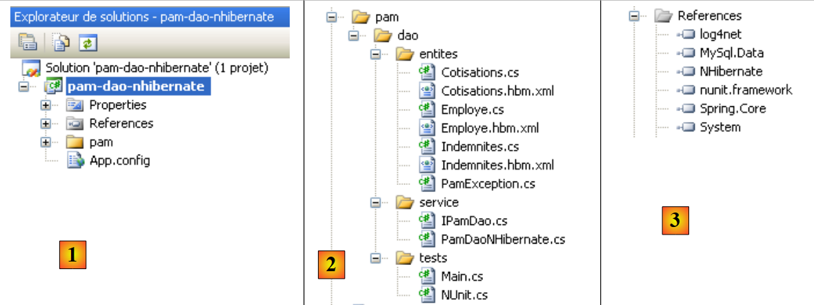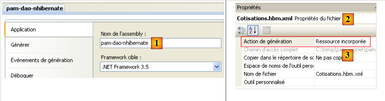 - en [3,4], la génération du projet va produire la DLL [pam-metier-dao-nhibernate.dll].