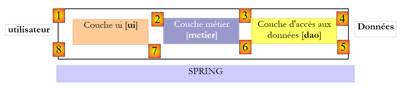 - la couche [ui] va mettre en forme ces résultats pour les présenter à l'utilisateur sous une forme appropriée puis les présenter. C'est le chemin [8].