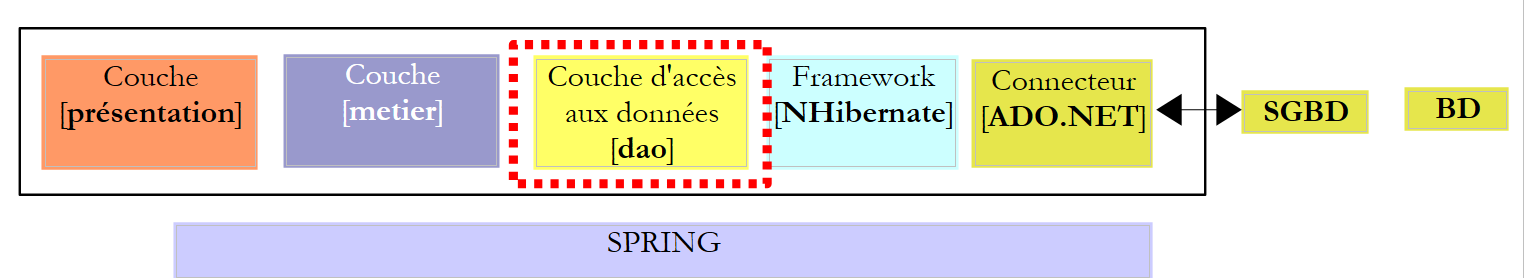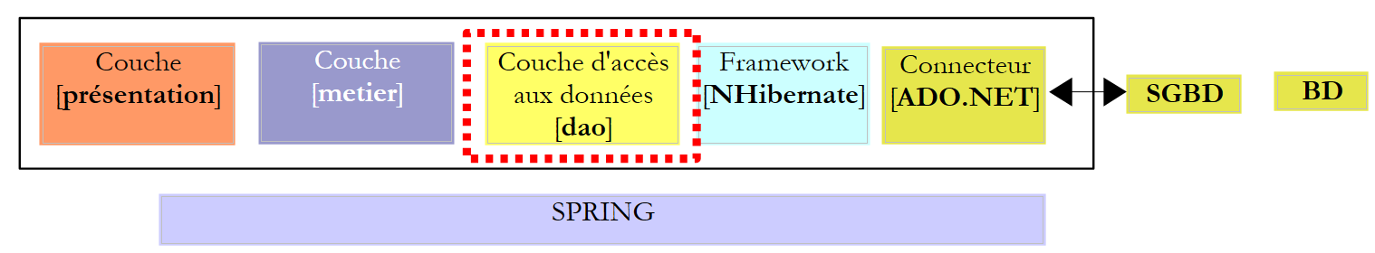 - l'intégration des différentes couches sera réalisée par Spring IoC