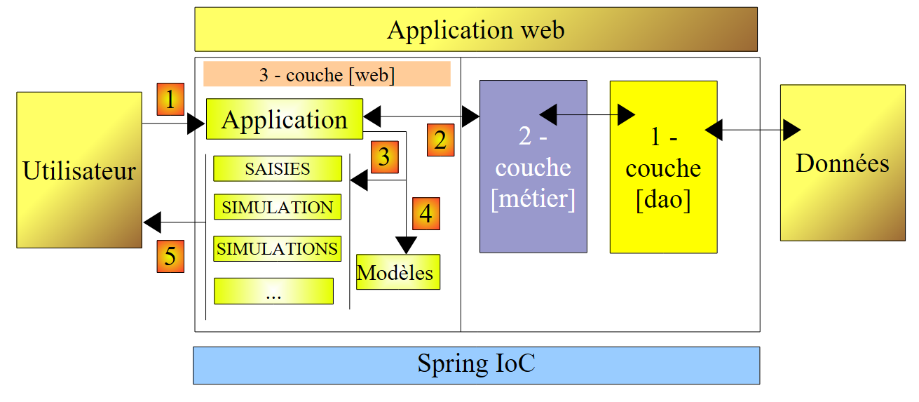 - [Saisies, Simulation, Simulations, ...] sont les vues. Une vue en .NET est du code ASP / HTML standard qui contient des composants qu'il convient d'initialiser. Les valeurs qu'il faut fournir à ces composants forment le modèle de la vue.