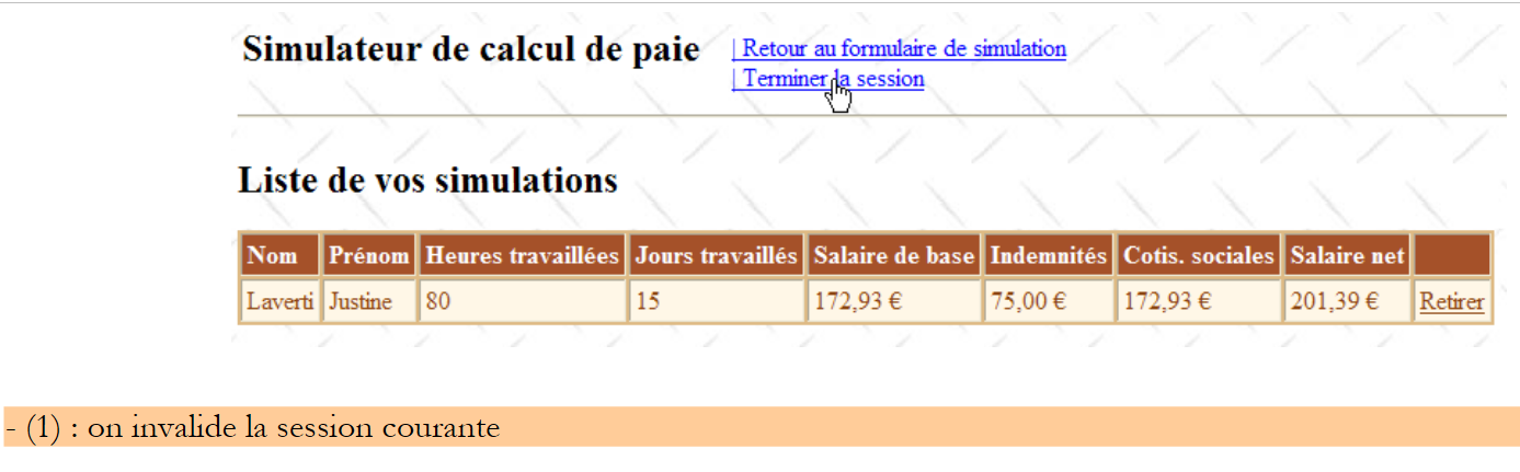 L'utilisateur peut demander à terminer sa session de simulations. Cela abandonne le contenu de sa session et présente un formulaire vide :